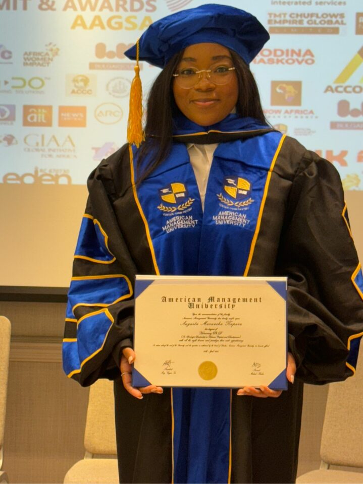 A jovem angolana Maravilha Kapaia, CEO da Opaia Foundation e recentemente nomeada vice-presidente da All-Africa Students’ Union (AASU – União dos Estudantes de Toda a África), foi distinguida pela American Management University (AMU) com o título de Doutoramento Honorário em Liderança e Gestão no Desenvolvimento do Capital Humano.